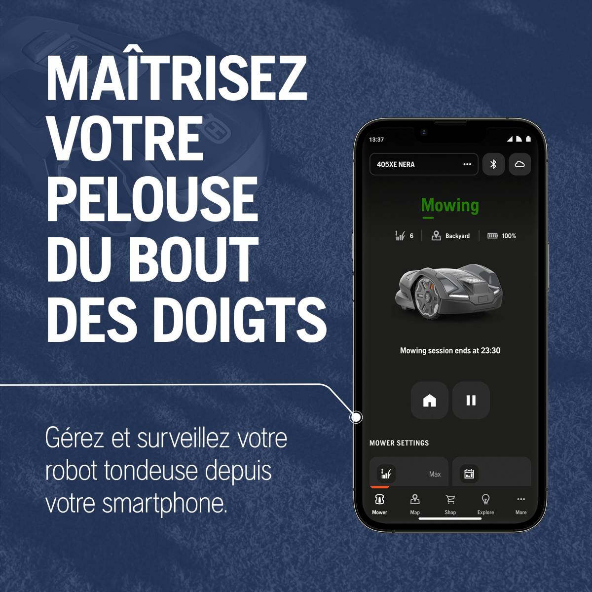 • Navigation avancée : passage étroit, tonte sur pentes, couverture uniforme.